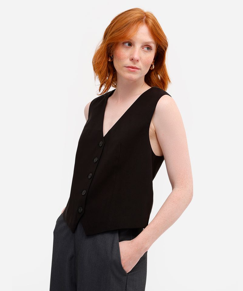 colete feminino de alfaiataria em viscose preto