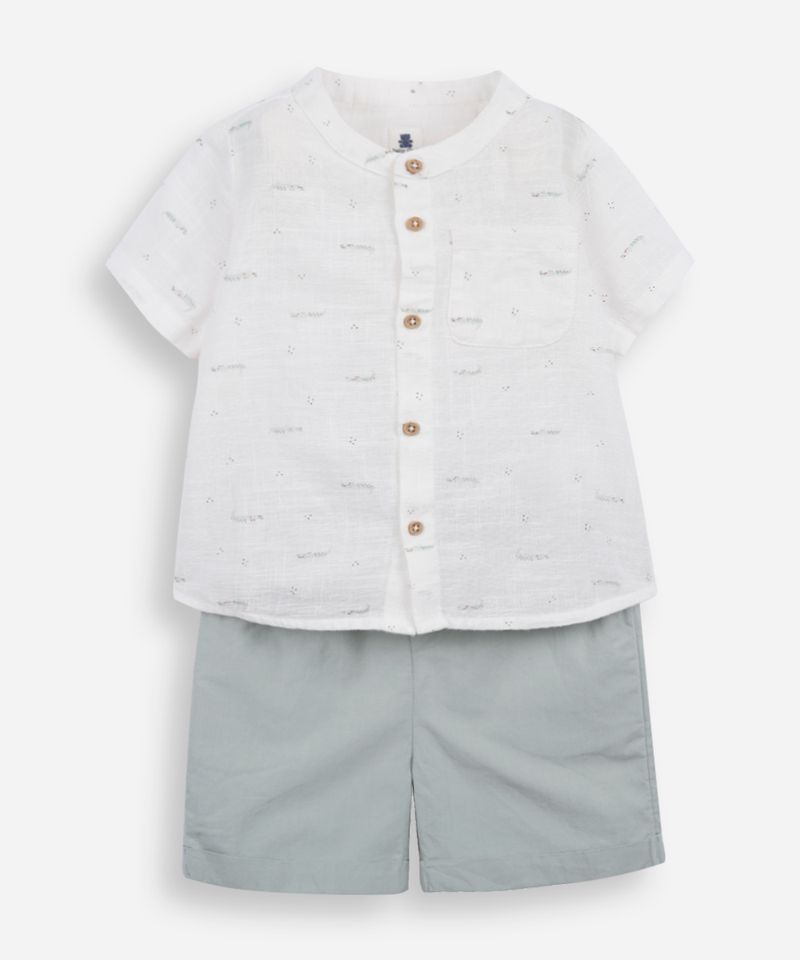 Vista seu pequeno com charme e conforto com este conjunto infantil. Perfeito para passeios e brincadeiras, este conjunto combina uma camisa leve com um short prático, garantindo que ele fique à vontade e estiloso em qualquer ocasião. Confeccionado em tecido de algodão, oferece um toque macio e suave na pele delicada do bebê, sendo uma ótima opção de roupa infantil.