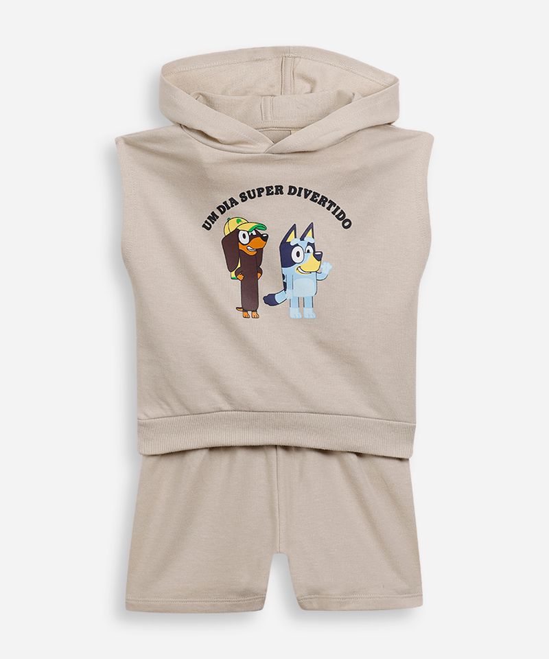 Prepare os pequenos para um dia super divertido com este conjunto infantil do Bluey! Confeccionado em moletinho de algodão, o conjunto oferece o máximo de conforto e liberdade para todas as brincadeiras. É a escolha perfeita para os fãs do desenho animado, unindo um visual descolado com a praticidade que o dia a dia das crianças pede.