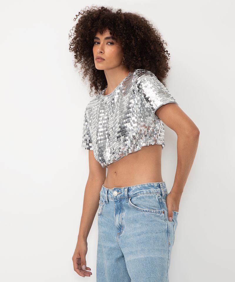 Adicione um toque de brilho e sofisticação ao seu visual com este top cropped de paetê. Perfeito para quem ama peças que se destacam, este modelo une o glamour dos paetês com uma modelagem moderna e confortável. Versátil, ele transita facilmente entre produções de festa e looks casuais cheios de atitude, garantindo que você esteja sempre estilosa.