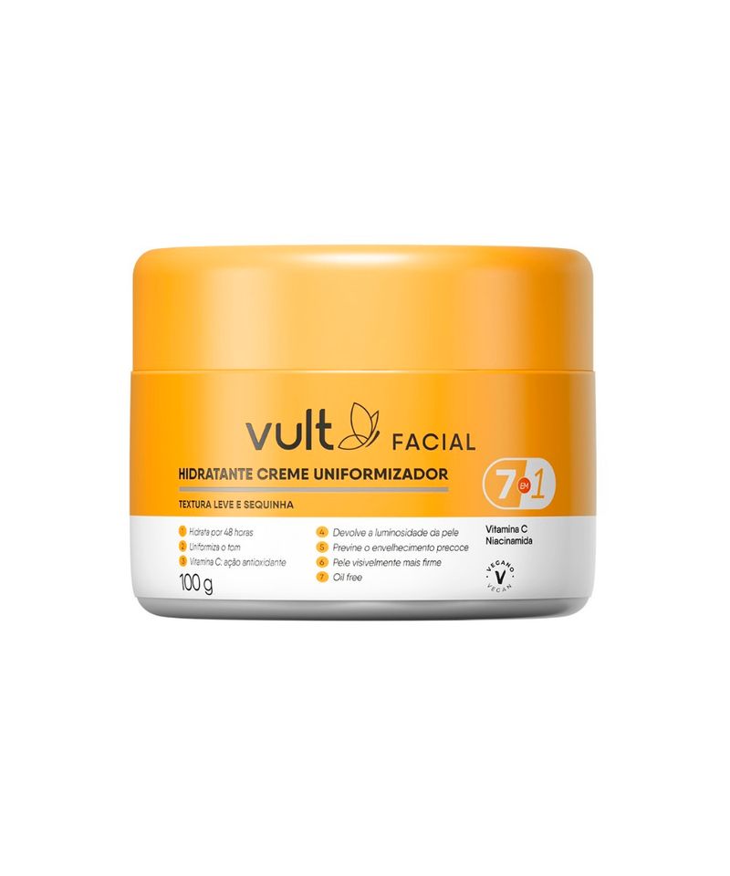 Transforme sua rotina de skincare com o Hidratante Creme Uniformizador Facial da Vult. Desenvolvido para quem busca uma pele com aparência mais saudável e iluminada, este creme oferece uma experiência completa de cuidado. Sua textura leve e sequinha é de rápida absorção, proporcionando conforto imediato sem deixar a pele oleosa, ideal para o uso diário.