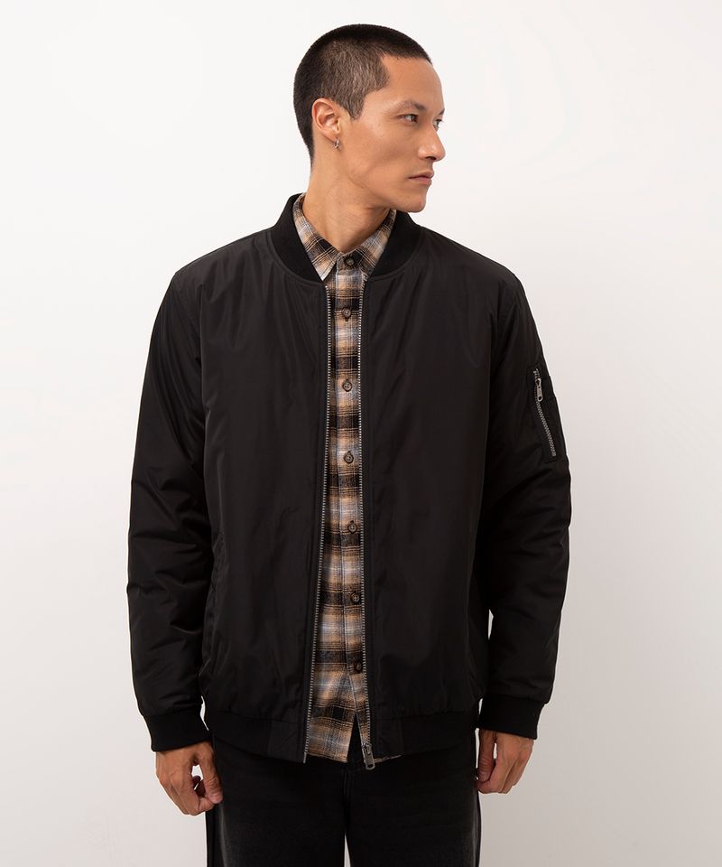 Sugestões de Uso e Combinações Para um visual casual, combine esta jaqueta bomber com uma camiseta básica e uma calça jeans. Se a ideia é um look mais elaborado, use-a sobre uma camisa de botão, como uma flanela xadrez, criando uma sobreposição estilosa. É o casaco masculino perfeito para os dias de temperatura amena, adicionando personalidade a qualquer produção.