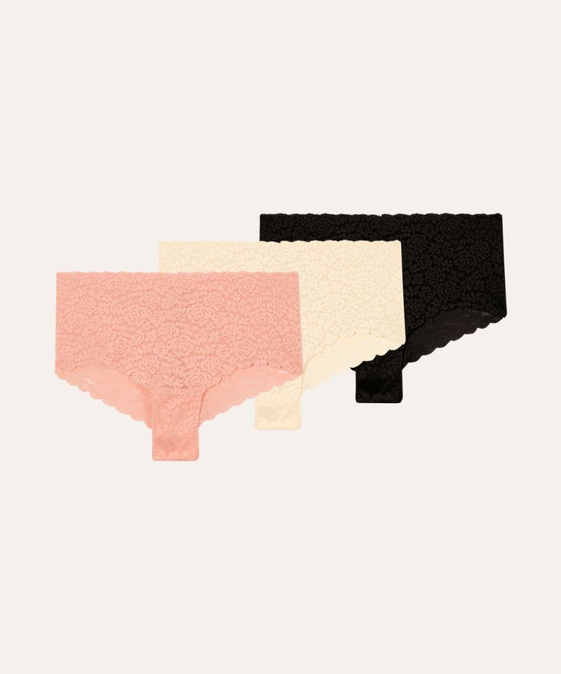 Os detalhes deste kit de calcinhas foram pensados para o seu conforto: