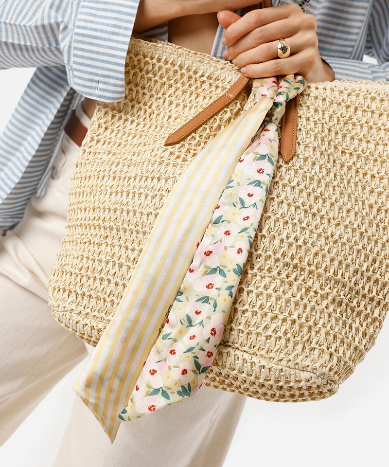 • Formato de faixa retangular, ideal para amarrações criativas no pescoço, no cabelo ou em acessórios.