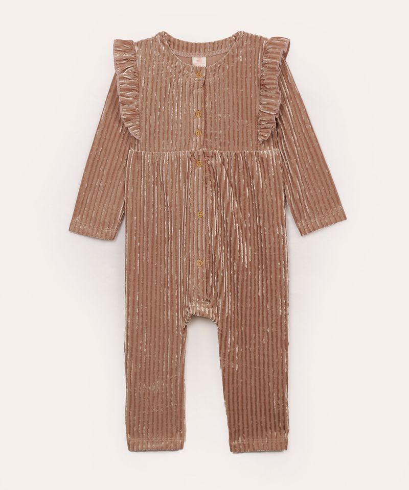 Este macacão infantil é a escolha perfeita para vestir sua pequena com muito charme e conforto. Confeccionado em uma malha aveludada, ele possui um toque extremamente macio e um caimento que permite liberdade de movimento, ideal para os momentos de brincadeira e descanso. O design delicado torna a peça versátil, sendo uma ótima opção tanto para o dia a dia quanto para ocasiões especiais.
