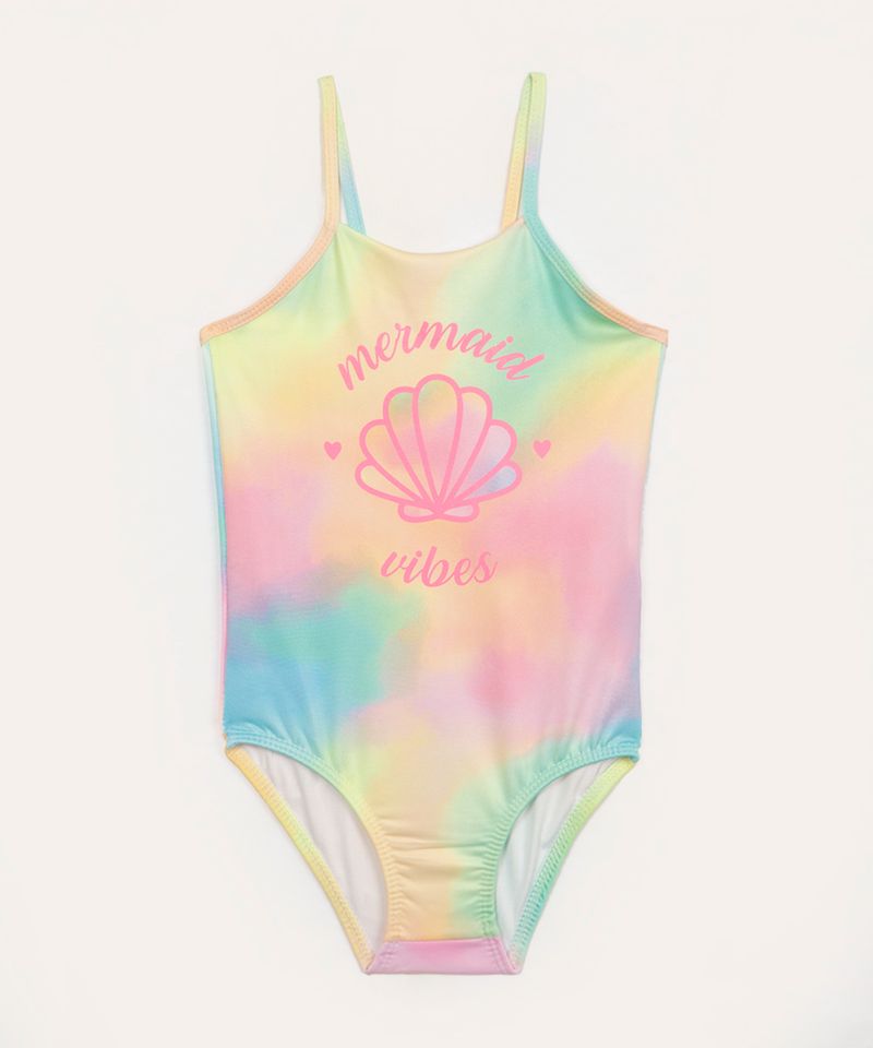 Este maiô infantil é a escolha perfeita para os dias de sol, praia e piscina, unindo conforto, segurança e um visual super divertido. Com uma estampa tie-dye em tons pastel e um tema de sereia, a peça inspira a imaginação e garante que as pequenas aproveitem cada momento de diversão na água. Seu tecido leve e com elasticidade permite total liberdade de movimentos para as brincadeiras.