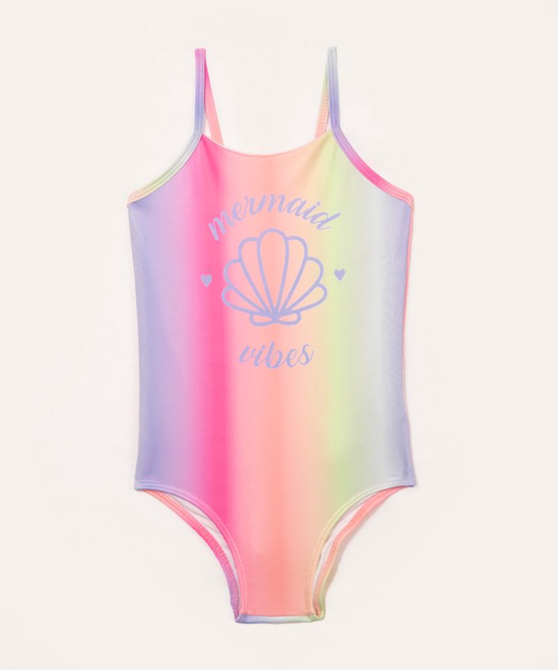 Prepare as pequenas para dias de sol e diversão com este maiô infantil, uma peça essencial na moda praia infantil. Com uma estampa degradê vibrante e a divertida inscrição 'Mermaid Vibes', ele é perfeito para as crianças que amam o universo das sereias. Confeccionado em malha macia e com proteção UV, garante conforto e segurança durante as brincadeiras na água.