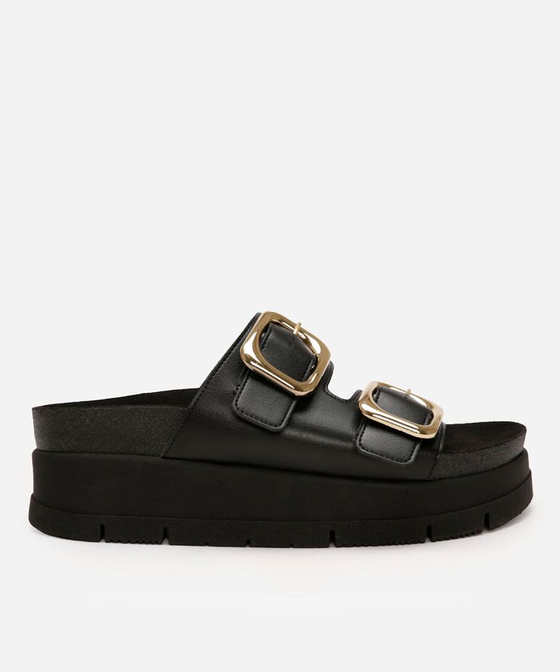 Esta sandália flatform se destaca por seus detalhes únicos: