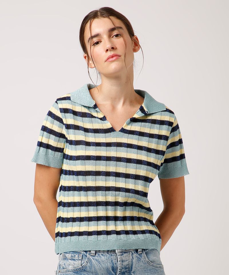 Esta camisa polo feminina da coleção Mindse7 é a peça ideal para quem busca um clássico repaginado com um toque de modernidade. Confeccionada em tricô com uma textura canelada, ela oferece um caimento confortável que se ajusta ao corpo. A padronagem listrada, combinada com o brilho sutil dos fios de lurex, transforma um item casual em uma peça cheia de estilo.