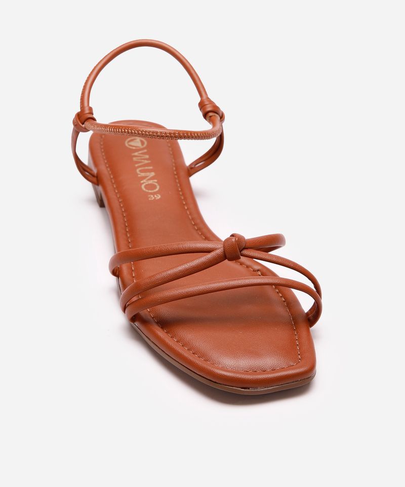 Esta sandália rasteira se destaca por seus detalhes cuidadosamente pensados: