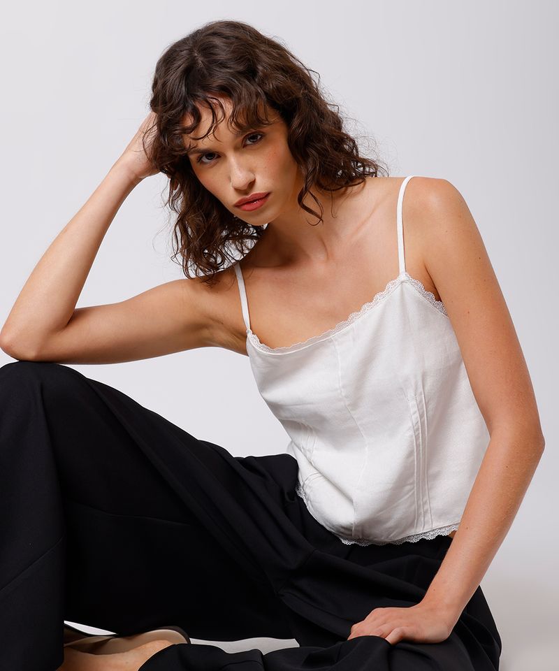 Renove seu estilo com esta regata feminina que combina delicadeza e um toque moderno. Confeccionada em um tecido com linho, a peça oferece um caimento reto e leve, ideal para os dias mais quentes. Seus detalhes sofisticados, como a renda e as nervuras, transformam o básico em uma peça-chave para compor looks versáteis e cheios de personalidade.