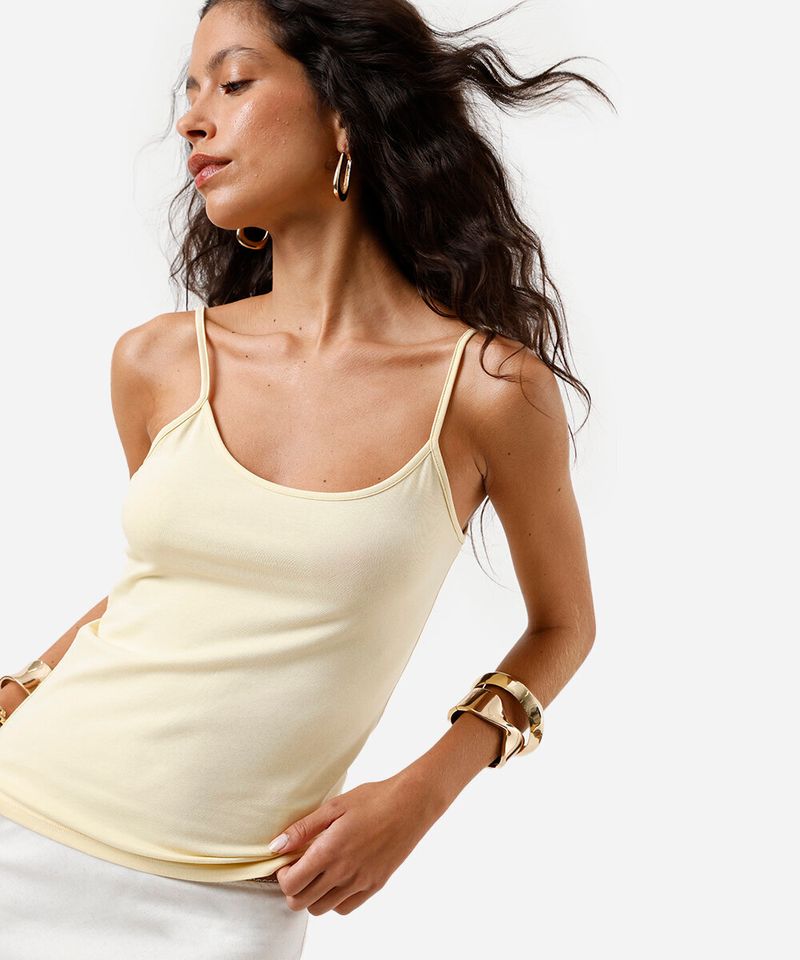 Essencial em qualquer guarda-roupa, esta regata feminina é a peça-chave para criar looks versáteis e confortáveis. Confeccionada em algodão peruano, conhecido por sua qualidade superior e toque extremamente macio, ela proporciona uma sensação agradável na pele durante todo o dia. Seu design clássico e atemporal a torna a base perfeita para diversas combinações, do casual ao elegante.