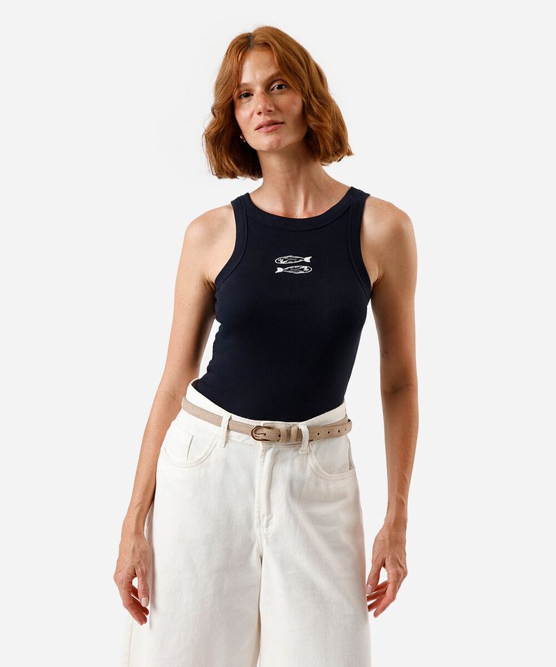 Esta regata feminina é a peça ideal para adicionar um toque de charme e conforto ao seu guarda-roupa. Confeccionada em malha canelada de algodão, ela oferece um caimento ajustado que se molda suavemente ao corpo, garantindo bem-estar durante todo o dia. O detalhe bordado de sardinhas traz uma bossa especial e autêntica, tornando o item perfeito para compor looks casuais e cheios de personalidade.