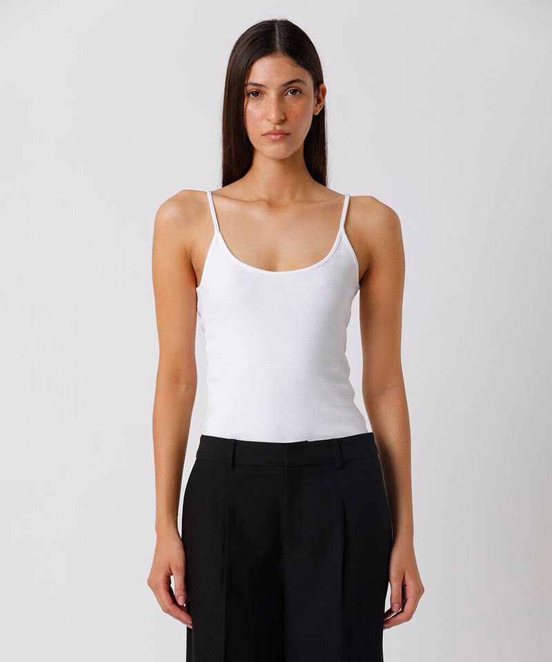 Uma peça essencial para um guarda-roupa versátil, esta regata da coleção Mindse7 combina conforto e estilo de forma única. Confeccionada em malha canelada de algodão peruano, ela oferece um toque excepcionalmente macio e um caimento ajustado que se molda ao corpo com suavidade. Seu design minimalista é perfeito para criar looks que vão do casual ao sofisticado.