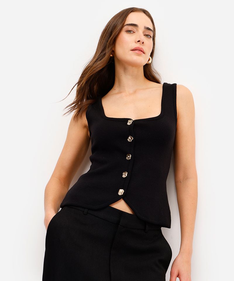 Renove seu guarda-roupa com esta regata feminina de tricô, uma peça que une sofisticação e conforto. Seu tecido de toque macio e caimento ajustado ao corpo proporciona um visual elegante para diversas ocasiões. Versátil, este top de tricô transita facilmente entre produções para o dia e para a noite, sendo um item-chave para compor looks modernos.