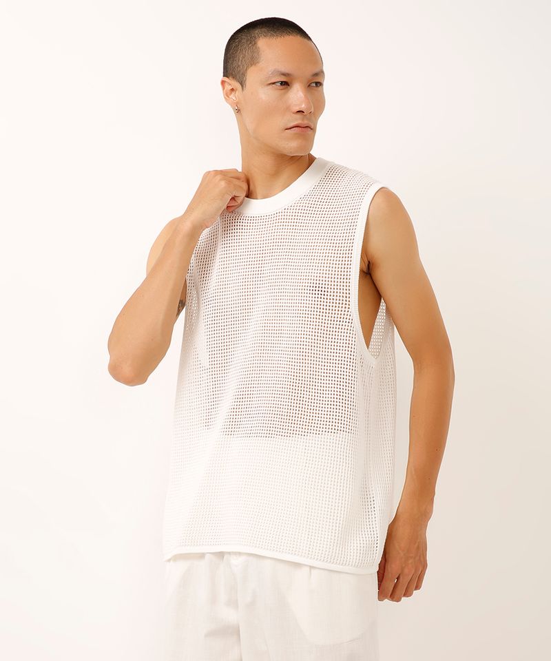 Renove seu visual de verão com esta regata masculina cheia de estilo. Confeccionada em tricô de algodão, a peça oferece um toque macio e excelente respirabilidade, ideal para os dias mais quentes. Sua modelagem reta com caimento solto garante conforto e liberdade de movimentos, sendo uma ótima escolha para compor looks casuais e despojados, como uma autêntica roupa masculina de praia ou para um passeio descontraído.