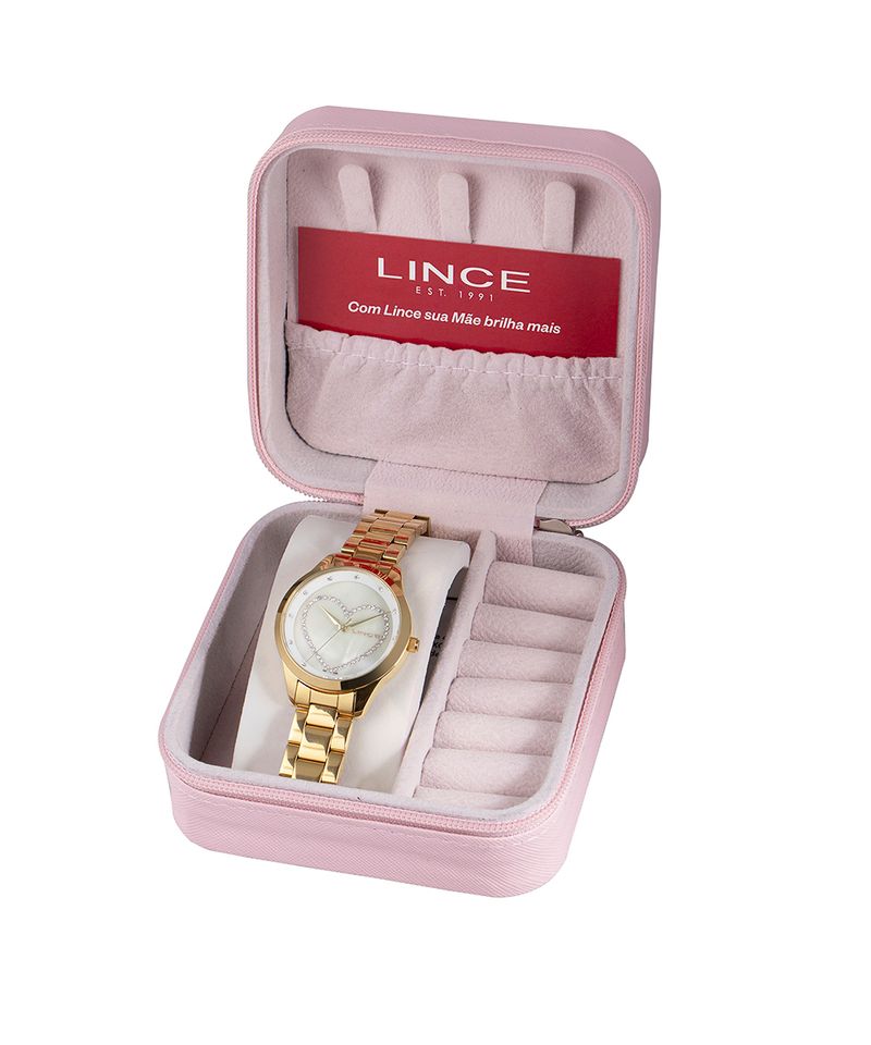 Este kit da Lince é a escolha perfeita para quem busca elegância e organização em um único produto. O relógio feminino dourado combina um design clássico com detalhes delicados, ideal para adicionar um toque de sofisticação ao seu pulso. Acompanhado de um charmoso porta-joias, este conjunto oferece praticidade para guardar seus acessórios favoritos, seja em casa ou em viagens. Um acessório versátil que transita facilmente entre o casual e o formal.