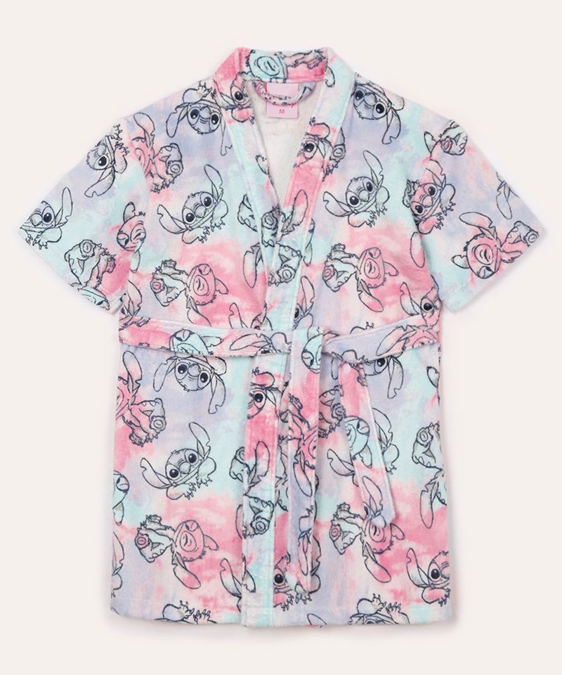 Torne a hora do banho ou a saída da piscina e da praia muito mais divertida e aconchegante! Este roupão infantil une o conforto do tecido atoalhado macio com a alegria do personagem Stitch. A estampa tie dye, super em alta, adiciona um toque de estilo e cor, tornando a peça um item indispensável para os pequenos.