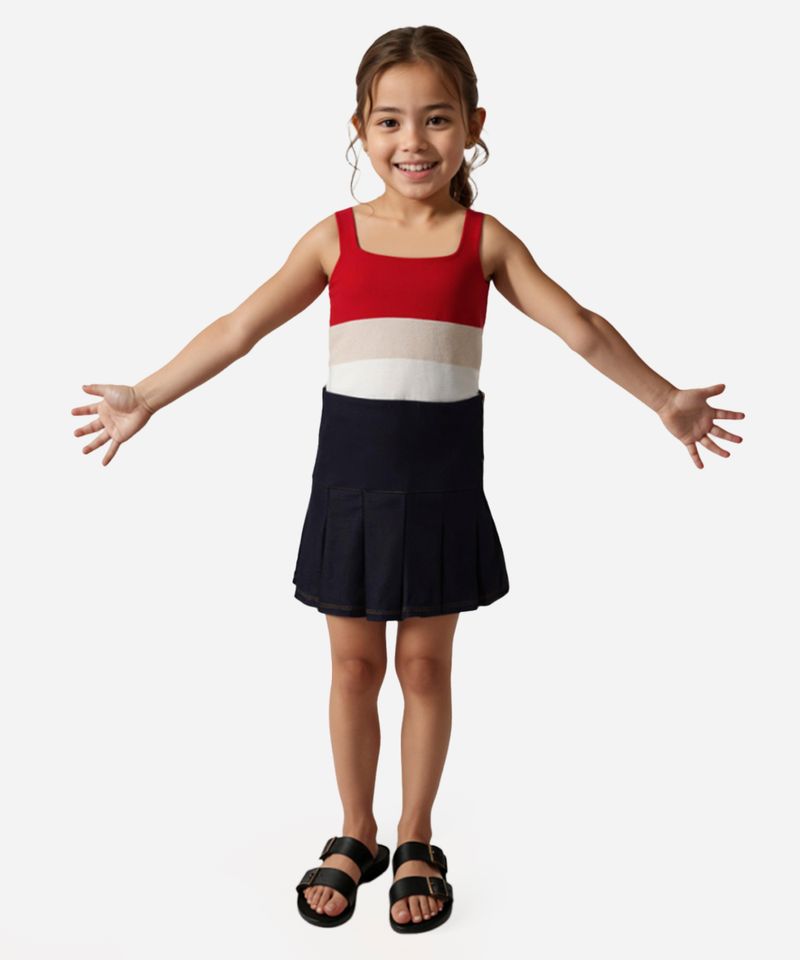 Esta saia infantil é a escolha perfeita para compor looks cheios de estilo e conforto para as pequenas. Confeccionada em malha com aparência de jeans, ela une a praticidade de um tecido maleável com o visual moderno do acabamento plissado. Ideal para as brincadeiras e passeios do dia a dia, a peça garante total liberdade de movimento sem abrir mão do charme.