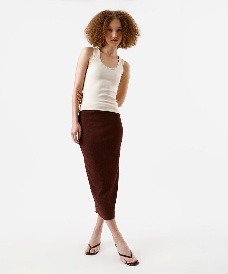 Descubra a versatilidade e a elegância da saia midi, uma peça essencial para um guarda-roupa moderno. Confeccionada em um tecido leve com textura diferenciada, ela oferece um caimento confortável que acompanha sutilmente o corpo. Este modelo é perfeito para transitar entre diferentes ocasiões, adaptando-se facilmente do casual ao sofisticado.