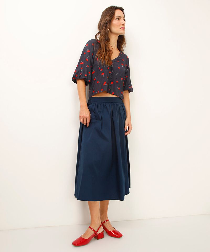 Descubra a fluidez e o conforto desta saia midi, uma peça que combina elegância e leveza para o seu dia a dia. Confeccionada em algodão, ela oferece um toque macio e um caimento impecável que valoriza o movimento. Perfeita para criar looks versáteis, do casual ao mais arrumado, esta saia feminina é um item essencial para um guarda-roupa moderno.