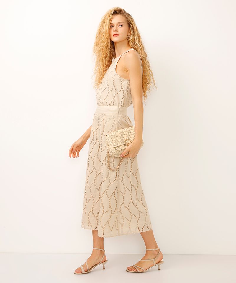 Adicione um toque de elegância e romantismo ao seu guarda-roupa com esta saia midi. Confeccionada em tecido laise de algodão, a peça oferece um toque leve e um caimento fluido que acompanha seus movimentos. Sua versatilidade permite criar desde produções mais arrumadas até looks descontraídos para o dia a dia, sempre com muito charme.