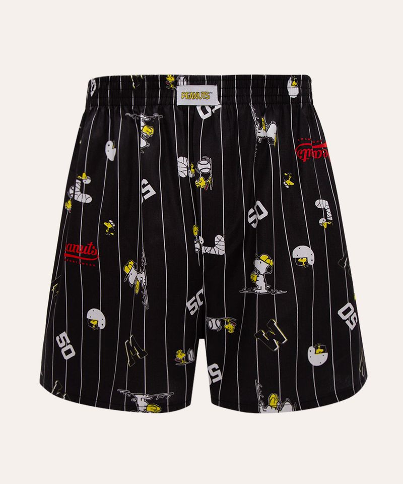Renove sua gaveta de moda íntima com esta cueca samba-canção divertida e confortável. Confeccionada em tecido de algodão, a peça oferece um toque macio e caimento solto, ideal para momentos de descanso ou para usar como pijama. A estampa do Snoopy em um fundo listrado adiciona um toque nostálgico e descontraído ao seu visual, unindo conforto e personalidade.