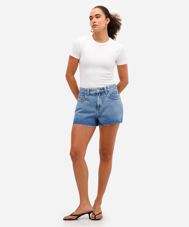 Sugestões de Uso e Combinações Para um look casual e descontraído, combine o short jeans com camisetas básicas, regatas ou croppeds. Nos pés, tênis ou rasteirinhas completam a produção com muito conforto. Se a ideia é um visual mais arrumado, experimente usá-lo com uma camisa de botões ou uma blusa de tecido mais fluido. Adicionar um cinto e uma sandália de salto bloco transforma o look para um passeio à tarde ou um happy hour.
