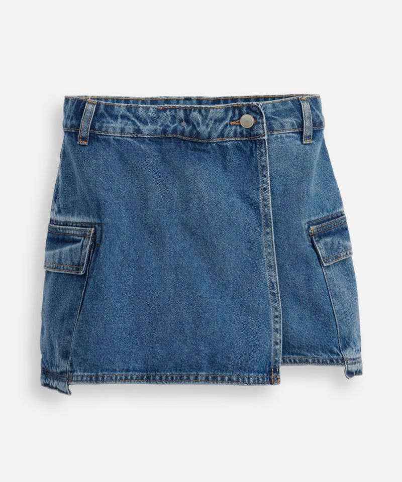 Este short saia juvenil é a peça que une o melhor de dois mundos: o estilo de uma saia com o conforto e a liberdade de um short. Perfeito para o dia a dia agitado das adolescentes, seu design moderno com a tendência cargo adiciona um toque descolado a qualquer produção. Confeccionado em jeans de algodão, oferece um caimento estruturado e confortável para acompanhar todas as aventuras.