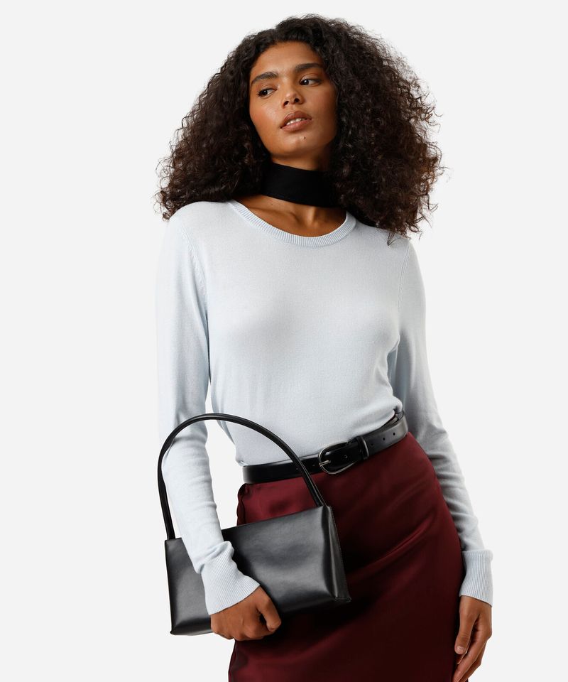 Este suéter de tricô se destaca por seus detalhes que unem conforto e estilo:
