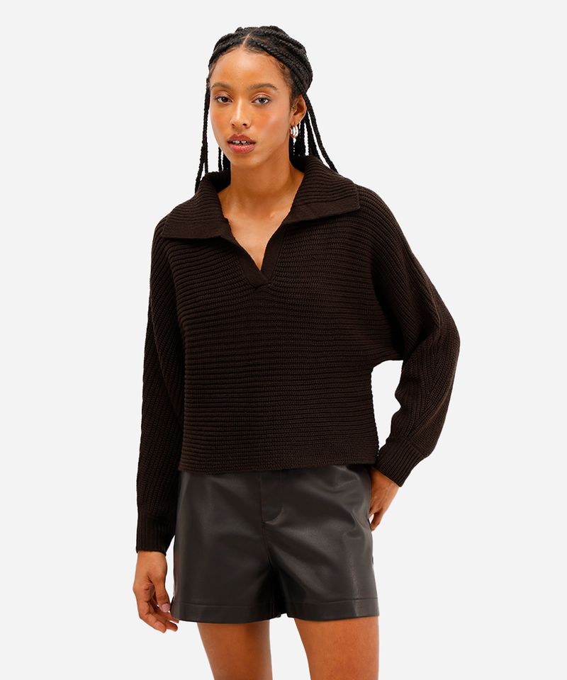 Sugestões de Uso e Combinações Versátil, este suéter com gola polo transita facilmente entre diferentes estilos. Para um look casual e despojado, combine-o com uma calça jeans de modelagem mom ou wide leg e tênis. Se a ideia é uma produção mais elaborada, aposte em shorts ou saias de poliuretano e botas de cano curto. Ele também funciona perfeitamente sobreposto a camisas finas em dias mais frios.