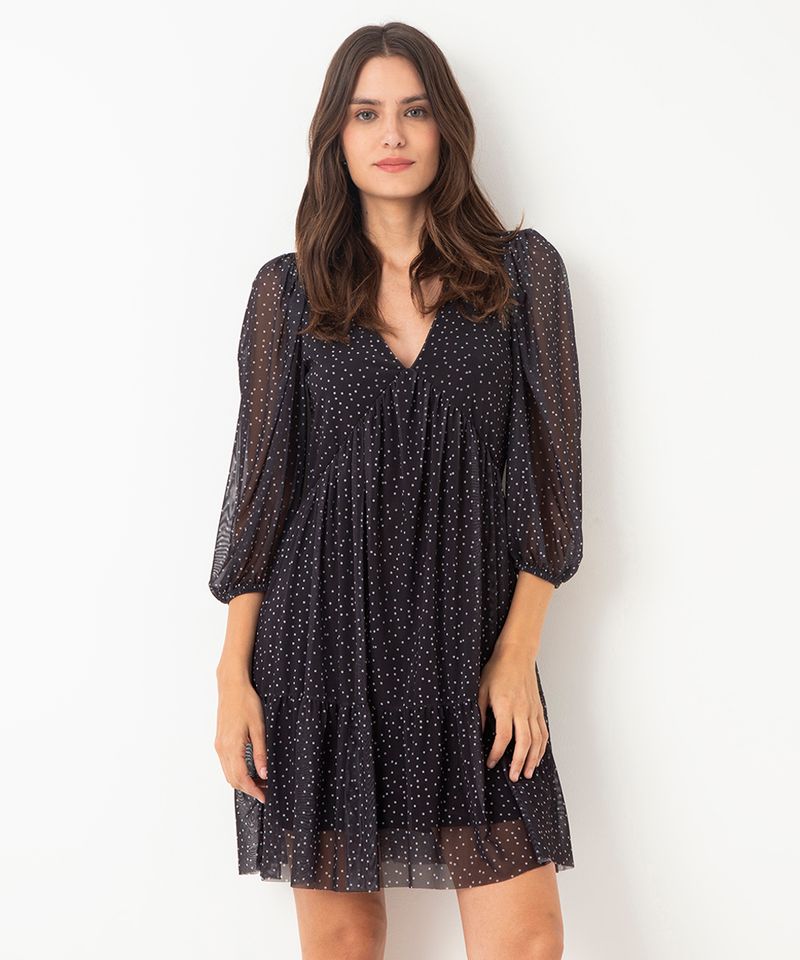 Este vestido curto combina o charme do tule com a clássica estampa de poá, criando uma peça delicada e cheia de estilo. Com um caimento leve e fluido, o modelo valoriza o movimento, enquanto as mangas bufantes trazem um toque de tendência e romantismo. É uma peça versátil, perfeita para transitar entre o dia e a noite com muita personalidade.