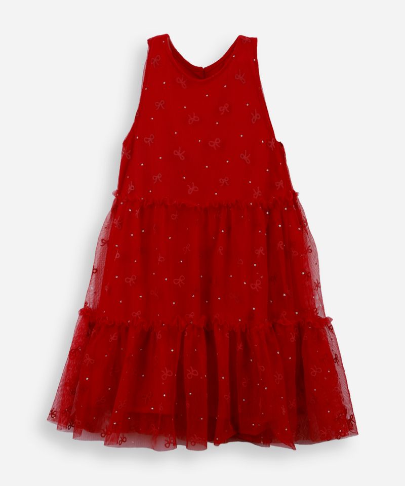 Este vestido infantil é a escolha perfeita para momentos especiais, transformando qualquer ocasião em uma celebração. Confeccionado em tule delicado, o modelo tem um caimento rodado que garante liberdade e movimento para as brincadeiras. Os detalhes de brilho e a estampa de laços adicionam um toque de encanto e sofisticação, ideal para festas e eventos.