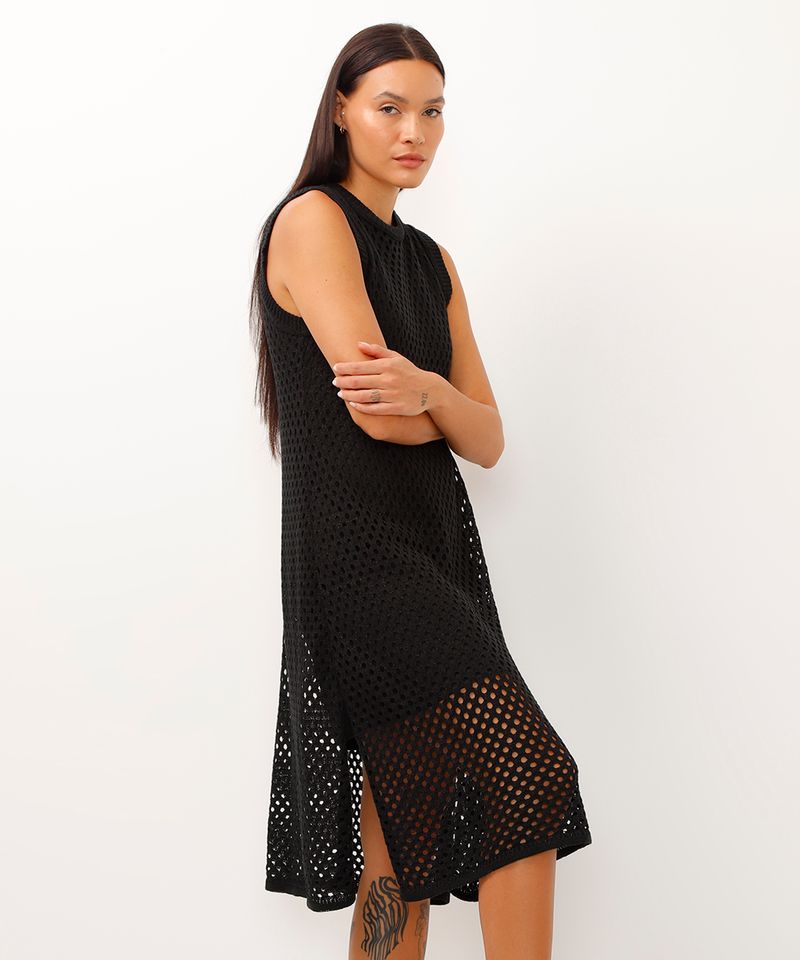 Este vestido midi é a escolha perfeita para quem busca uma peça elegante e com um toque moderno. Confeccionado em tricô com trama aberta, ele oferece um caimento fluido e confortável, ideal para diversas ocasiões. Os fios de lurex entrelaçados no tecido adicionam um brilho sutil, tornando o modelo versátil para transitar do dia para a noite com sofisticação.