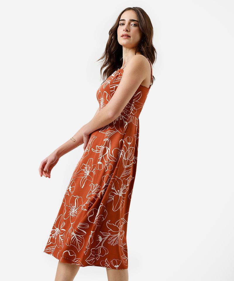 Sugestões de Uso e Combinações Para um look de dia, combine este vestido estampado com sandálias rasteirinhas ou anabelas e uma bolsa de palha. À noite, eleve a produção com sandálias de salto bloco, acessórios dourados e uma jaqueta jeans para um toque despojado. É uma roupa feminina versátil que se adapta a passeios, almoços especiais e encontros casuais.
