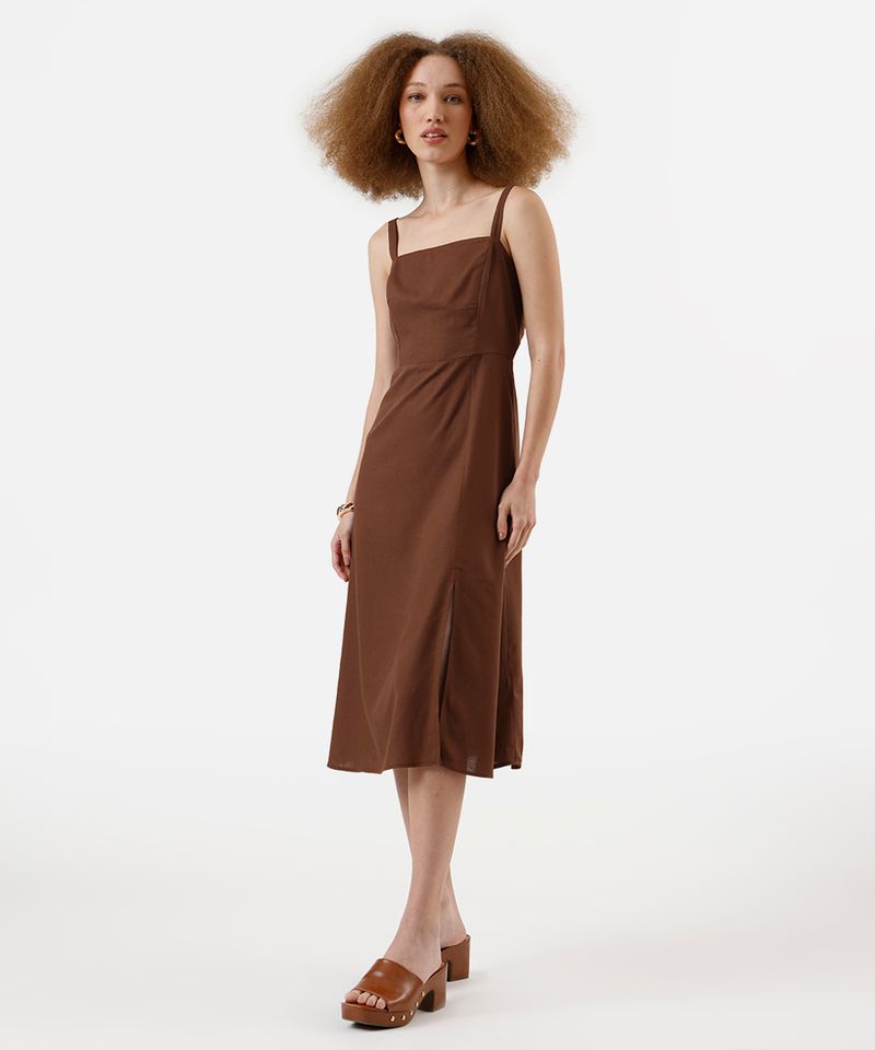 Este vestido midi é a escolha perfeita para quem busca elegância e conforto em uma única peça. Confeccionado em uma sofisticada mistura de viscose e linho, ele oferece um caimento leve e um toque agradável à pele, ideal para os dias mais quentes. Sua versatilidade permite criar looks que vão do casual ao mais arrumado, acompanhando você em diferentes momentos.